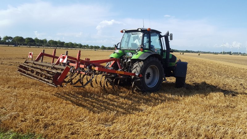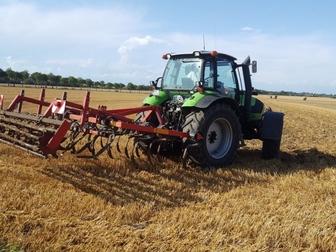 Um den Boden optimal für die neue Aussaat vorzubereiten wird der Boden verschiedentlich mechanisch bearbeitet. Zuerst wird flach gearbeitet z.B. mit dem Grubber, später dann nochmal tief, mit dem Pflug. Anschließend wird das Saatgut mit der Drillmaschine in den Boden gebracht.